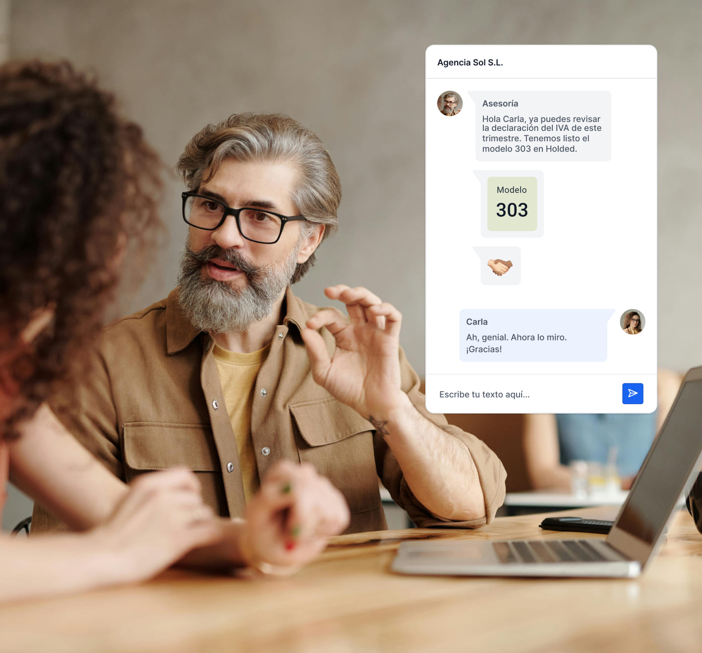 Sí. Holded permite a los autónomos compartir acceso en tiempo real con su asesoría o gestoría directamente desde la plataforma. Ambas partes trabajan con los mismos datos actualizados: facturas, modelos e informes, sin necesidad de enviar archivos por email ni hacer transferencias manuales.