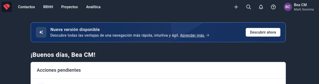 Entra en tu cuenta de Holded, y haz clic sobre el nombre de tu empresa, en la parte superior derecha de la interfaz.