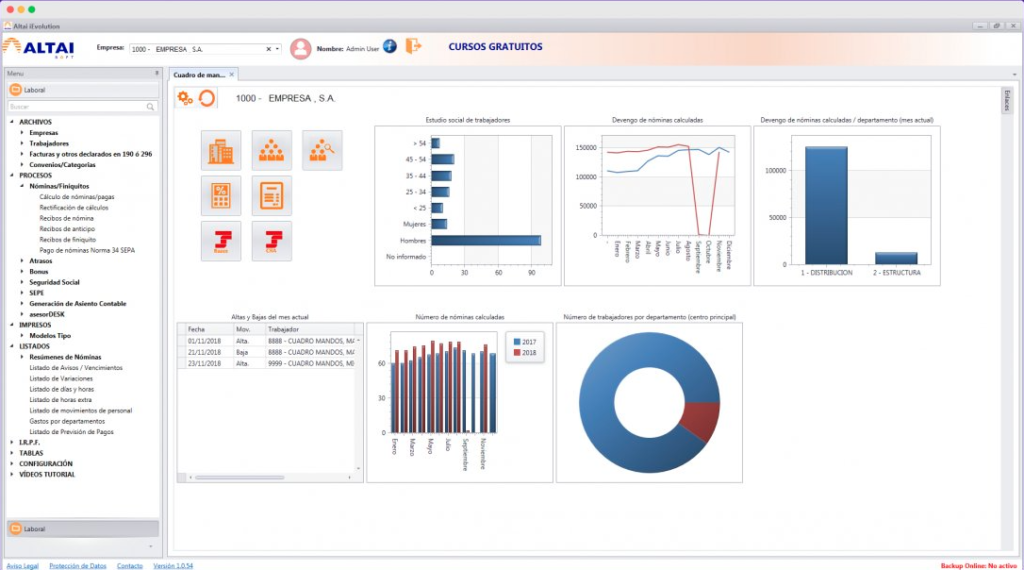 Con el Programa de Gestión Laboral de Altai te podrás hacer cargo de nóminas de empleados, contratos, comunicaciones con el SEPE o la gestión del IRPF entre otros. Todo perfectamente controlado y centralizado para saber el estado contractual de cada miembro del equipo en todo momento.