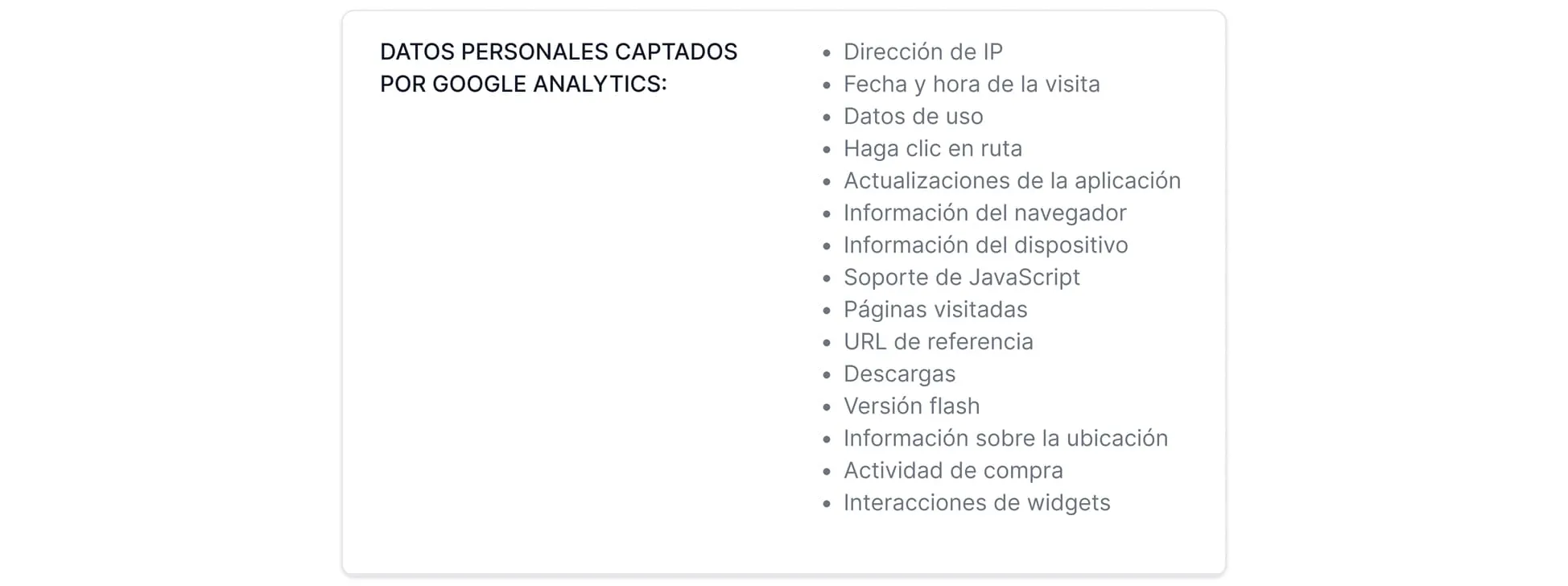 El uso de Google Analytics puede transferir datos personales fuera de la UE/EEE y, en concreto, a terceros países que no contemplen normas similares de protección de datos que la europea. Si los datos son transferidos a Estados Unidos, existe el riesgo de que las autoridades estadounidenses puedan tratar tus datos para adoptar medidas de control y vigilancia, posiblemente sin poder recurrir legalmente. A continuación, encontrarás una lista de países a los que se transfieren los datos. Puede deberse a diferentes motivos, como el almacenamiento o el tratamiento.